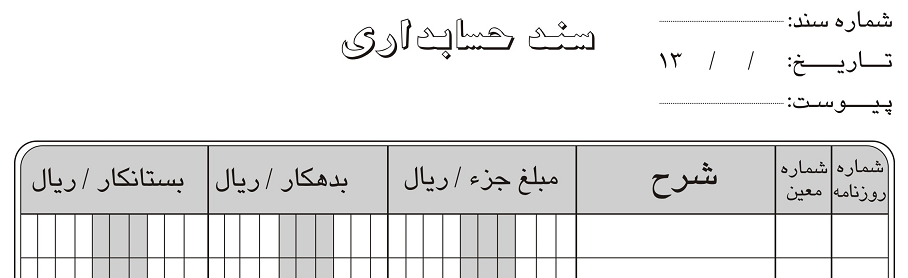نکته:با توجه به فراگیر شدن نرم افزارهای حسابداری، توضیحاتی درباره روش دستی ثبت سند حسابداری ارائه نمیشود.