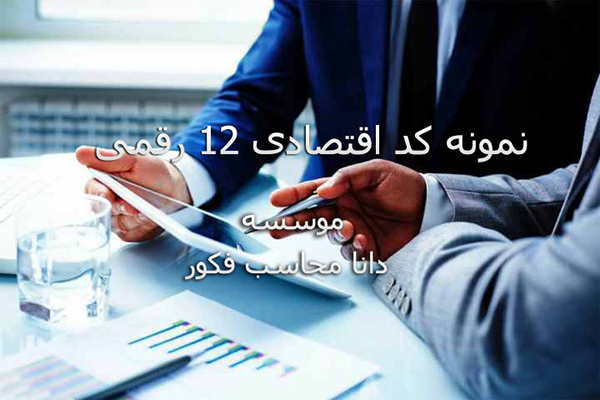 برای دیدن نمونه کد اقتصادی ۱۲ رقمی می توانید به سایت دانا محاسب فکور مراجعه نمایید.